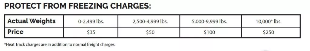 â—† Any customer can use Heat Track to guarantee freezable protection. Contact your Sales Representative so they can work with our Operations team to move your freezable goods, even on the coldest days.